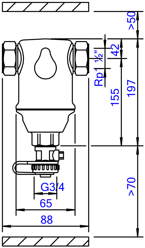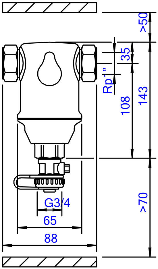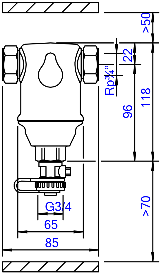 Séparateurs de boues et particules en laiton sans aimant - Raccord horizontal - Haute température (max 180°C)