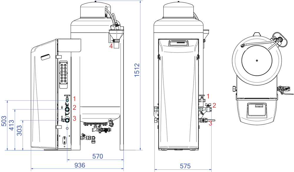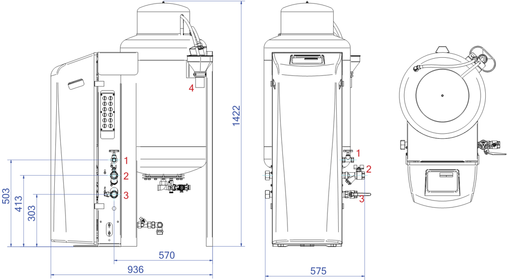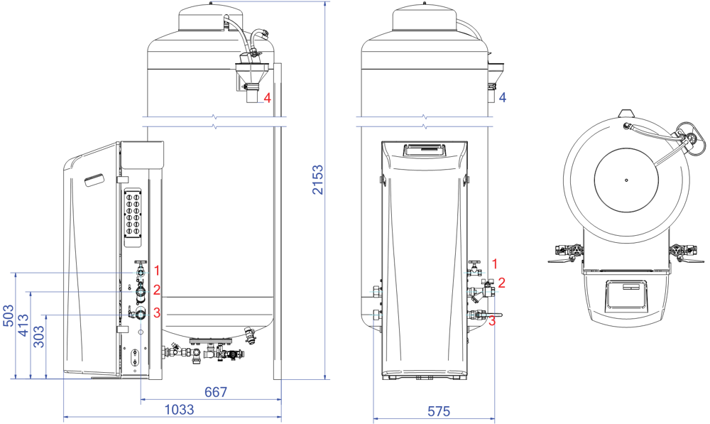 - La température maximale au point de raccordement : 70°C (plus de 70°C possible avec réservoir auxiliaire)