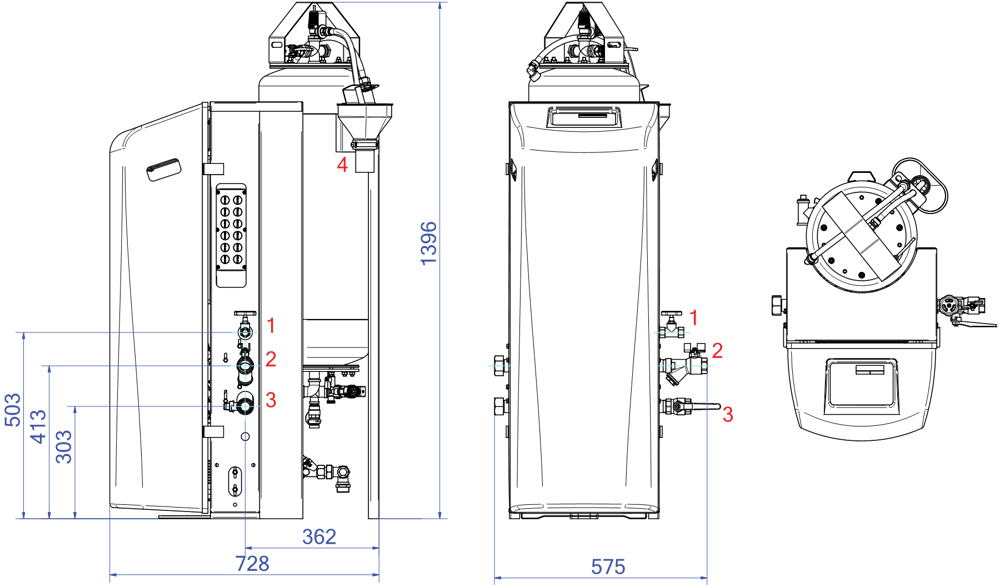 - La température maximale au point de raccordement : 70°C (plus de 70°C possible avec réservoir auxiliaire)